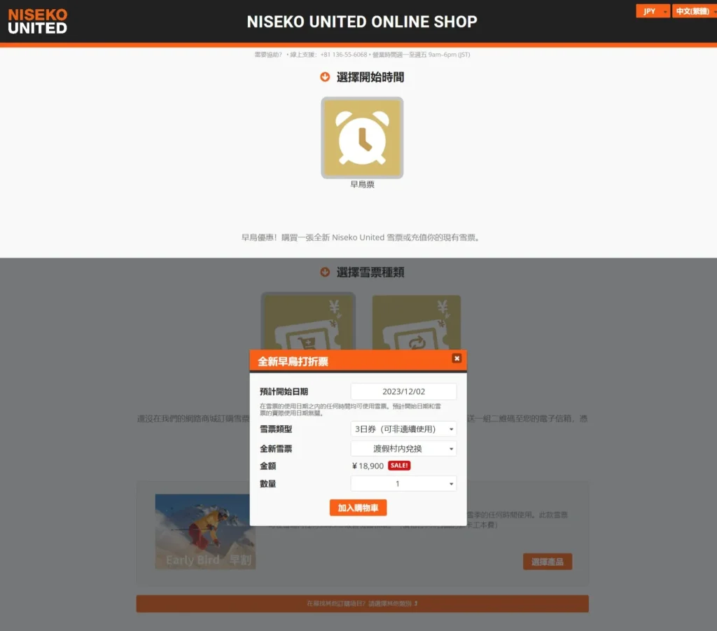目前還可以購買的是Hirafu & Hanazono 比羅夫與花園雪場的早鳥三日票,販售時間為10/20-11/20,請參考另一篇文章